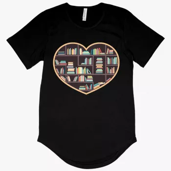 Men’s I Heart Books T-Shirt with Curved Hem – Bookish T-Shirts